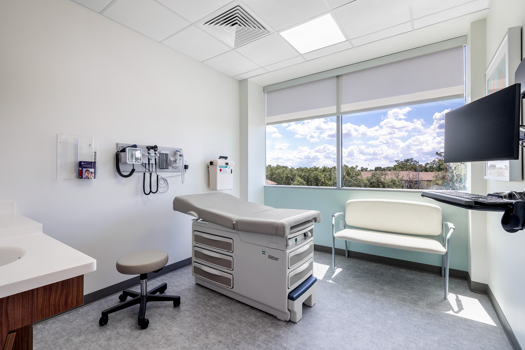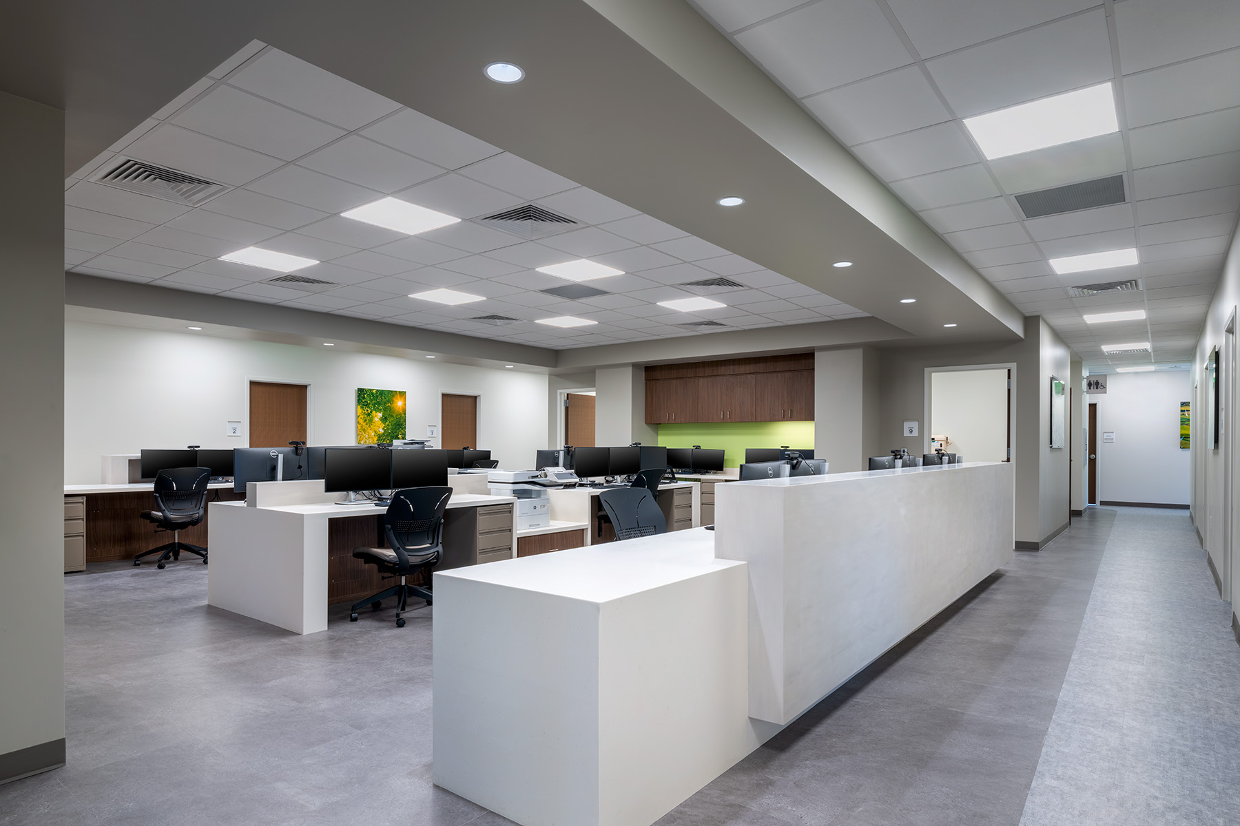 New medical office building housing a cancer center with a linear accelerator, medical offices, an ambulatory surgery center, wound care service, and OB/GYN area.