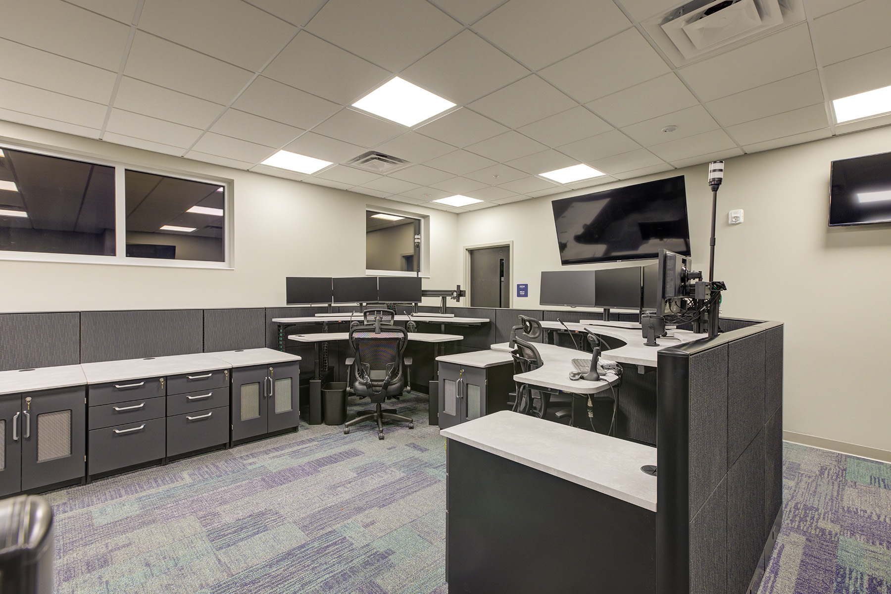 Aging facilities, crowded workspace, and the need for improved security prompted the design of the City’s new three-story police station and emergency operations center. The state-of-the-art facility offers advanced technologies, enhanced security, redundancy, and a larger facility to support growth through 2039. Spaces within the building are specialized to accommodate the sally port, booking and intake areas, personal property storage, evidence storage, weapons storage, physical agility/defensive tactics room, 911 call center, administration offices, conference rooms, and workstation areas. A multipurpose room for community and public meetings is located on the ground level of the facility.