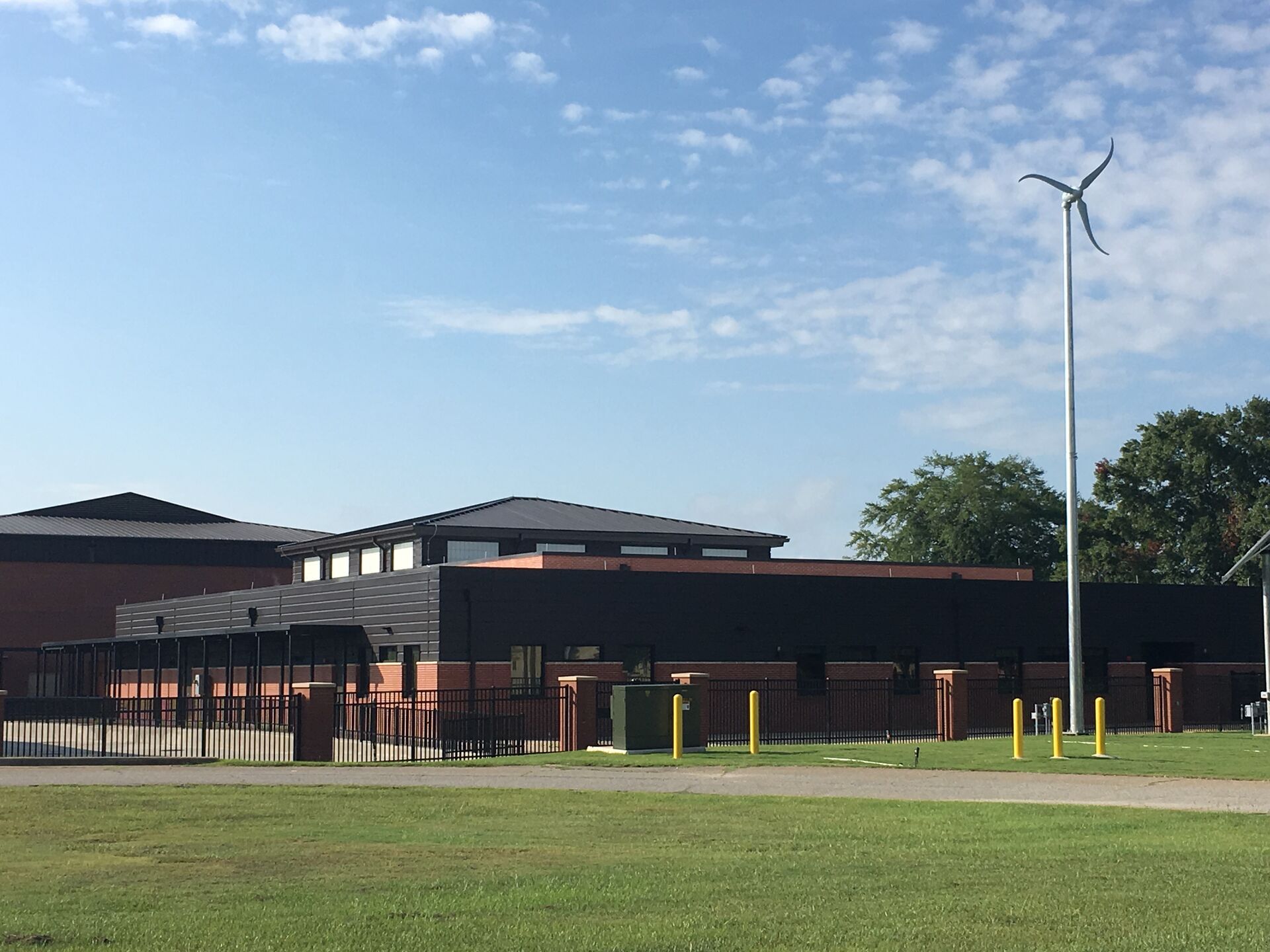 The new annex provides additional classrooms and an auxiliary gym and offers state-of-the-art classrooms for up to 150 students in sixth through eighth grades. The design is supportive of interactive instruction and provides an energy efficient, quality indoor environment. Students can learn about renewable energy systems and the importance of sustainability through wind and solar energy demonstration projects in the outdoor learning areas.