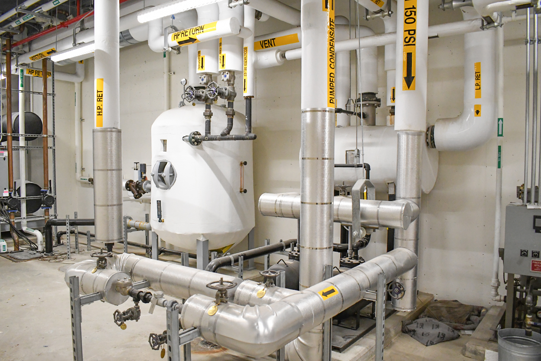 Originally constructed in 1921, the central energy plant was reaching the end of its service life when the 2010 flooding of the Des Plaines River impacted the below grade plant. Construction of the new plant began in 2016 and includes four boilers generating 540,000 lbs/hr of 125 psig saturated steam, which powers a steam turbine generator producing 850 kW, an emergency generator and underground steam distribution system.