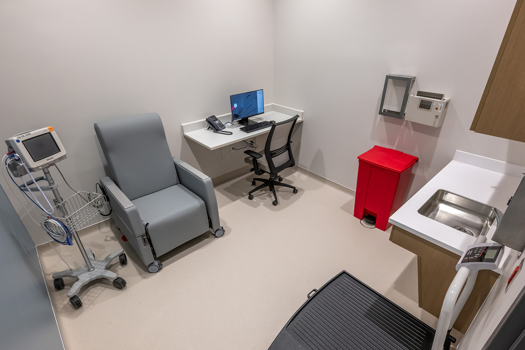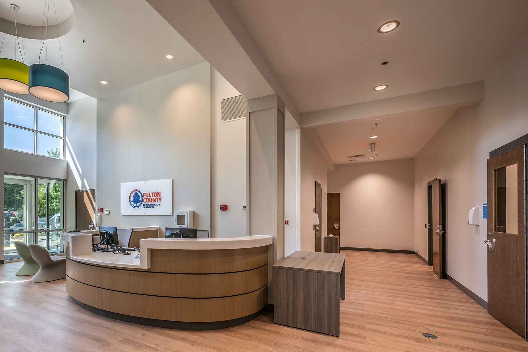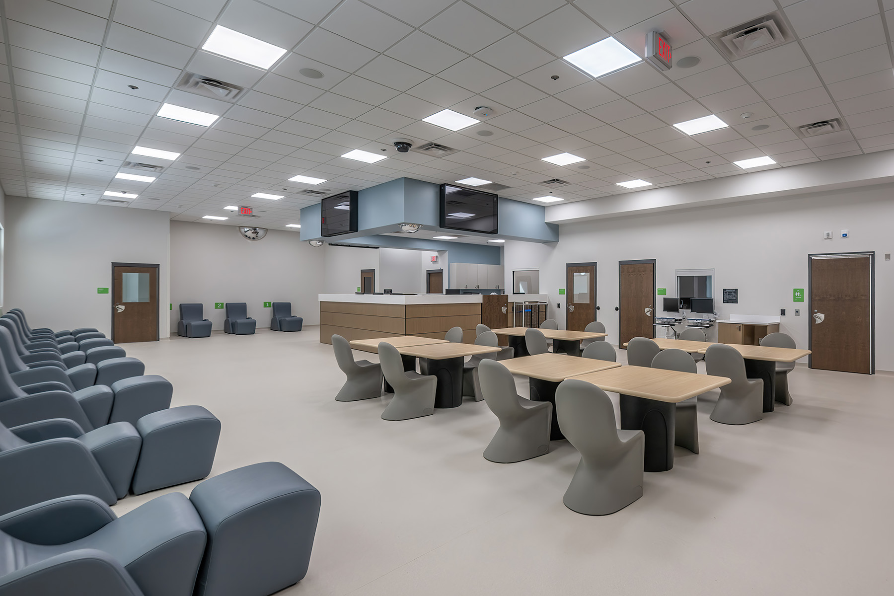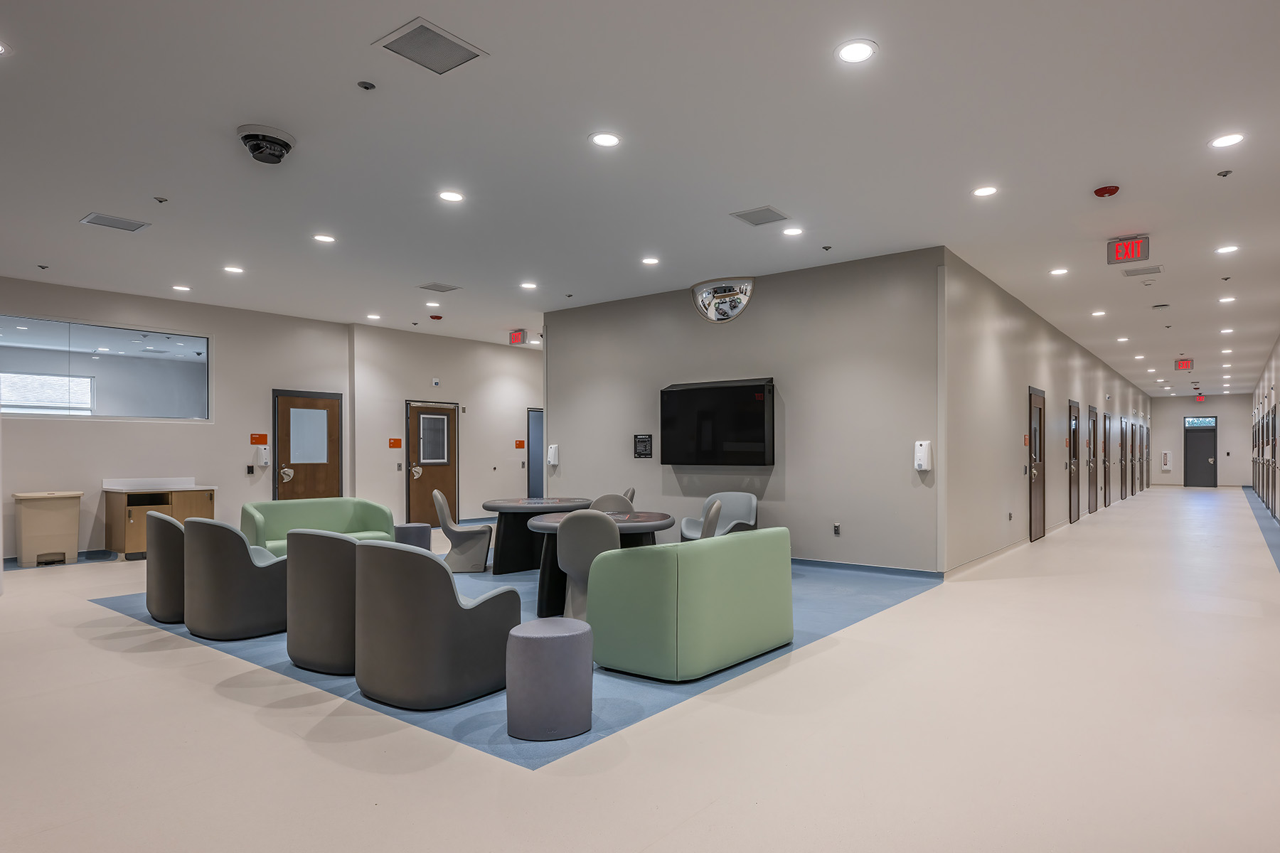 This 24-bed 18-observation chair center provides behavioral health crisis services 24-hours 7-days a week. The facility incorporates a “living room” model, which allows patients with lower acuity of need to receive peer support from individuals with experience of behavioral health or substance use issues. This model allows crisis beds to be used by patients with the greatest need.