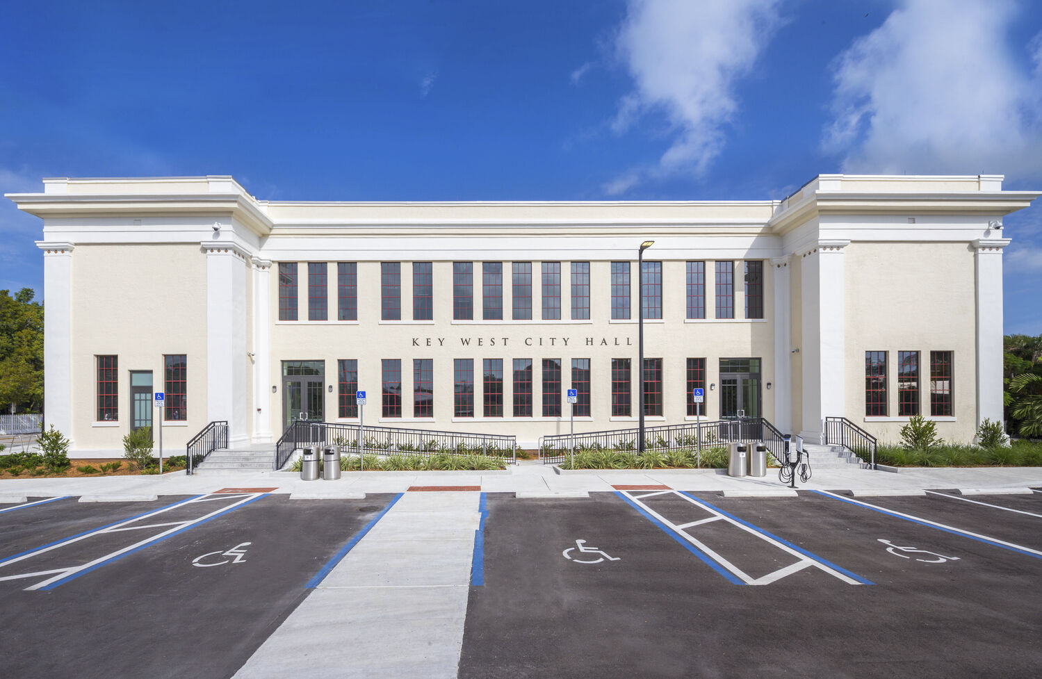 A historic 1920’s building underwent an adaptive reuse from a two-story elementary school into the City of Key West’s new City Hall. There are two structures connected by an outside walkway. The city hall houses offices for the mayor, city manager, city attorney, city commission and city clerk. There is also a customer service desk, as well as office space for the licensing, code compliance, parking, planning, engineering, IT, human resources and finance departments.
