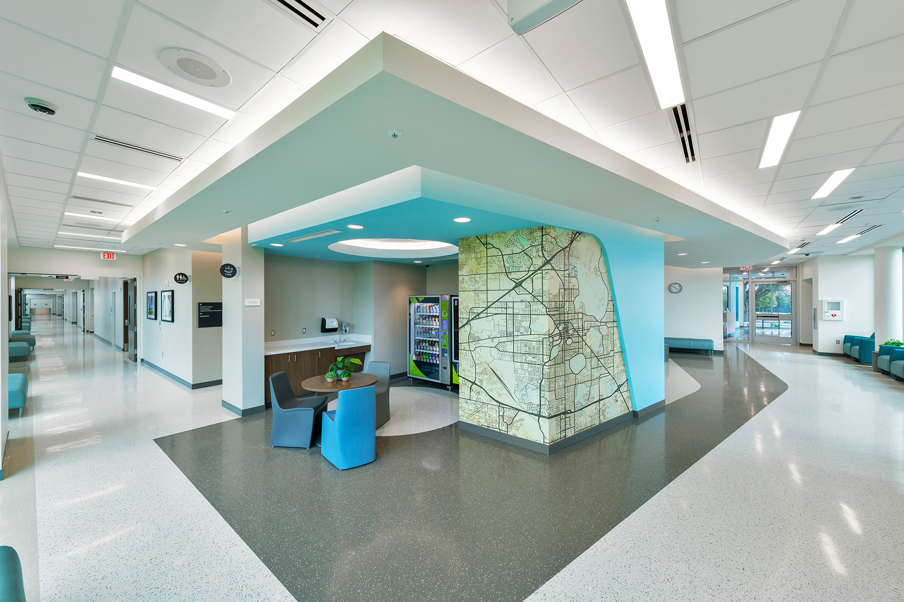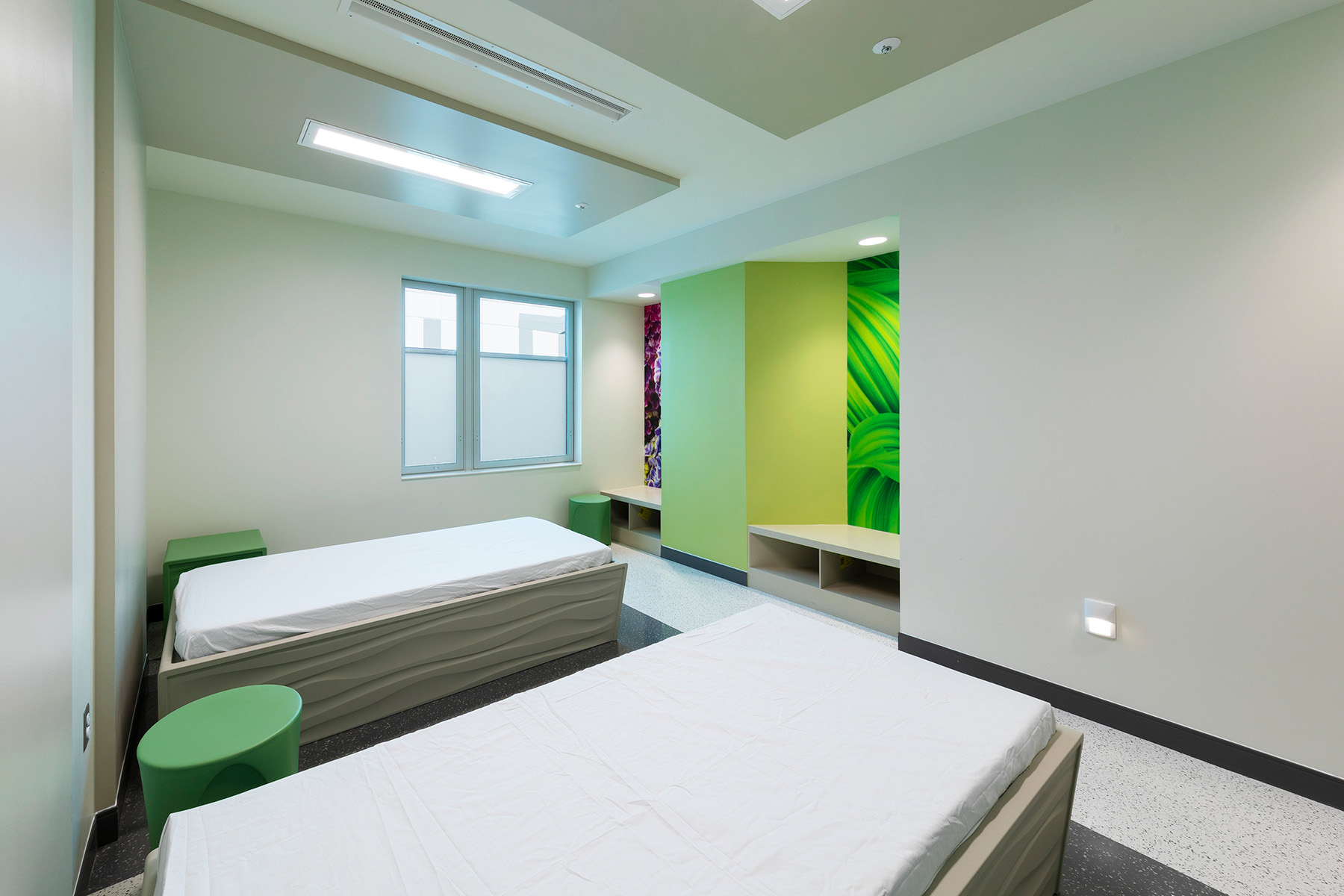 Lakeland Regional Health’s new behavioral health hospital aims to provide comprehensive behavioral healthcare for both adults and children through inpatient and outpatient services. Designed to accommodate up to 96 beds, the facility is comprised of three one-story buildings and is Certified LEED for Healthcare v4. Sustainable design features include premium efficiency equipment, demand controlled ventilation, low-flow plumbing fixtures, LED lighting, environmentally friendly refrigerants, adhesives, and sealants.