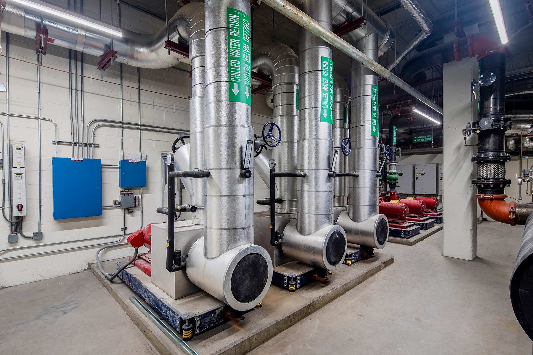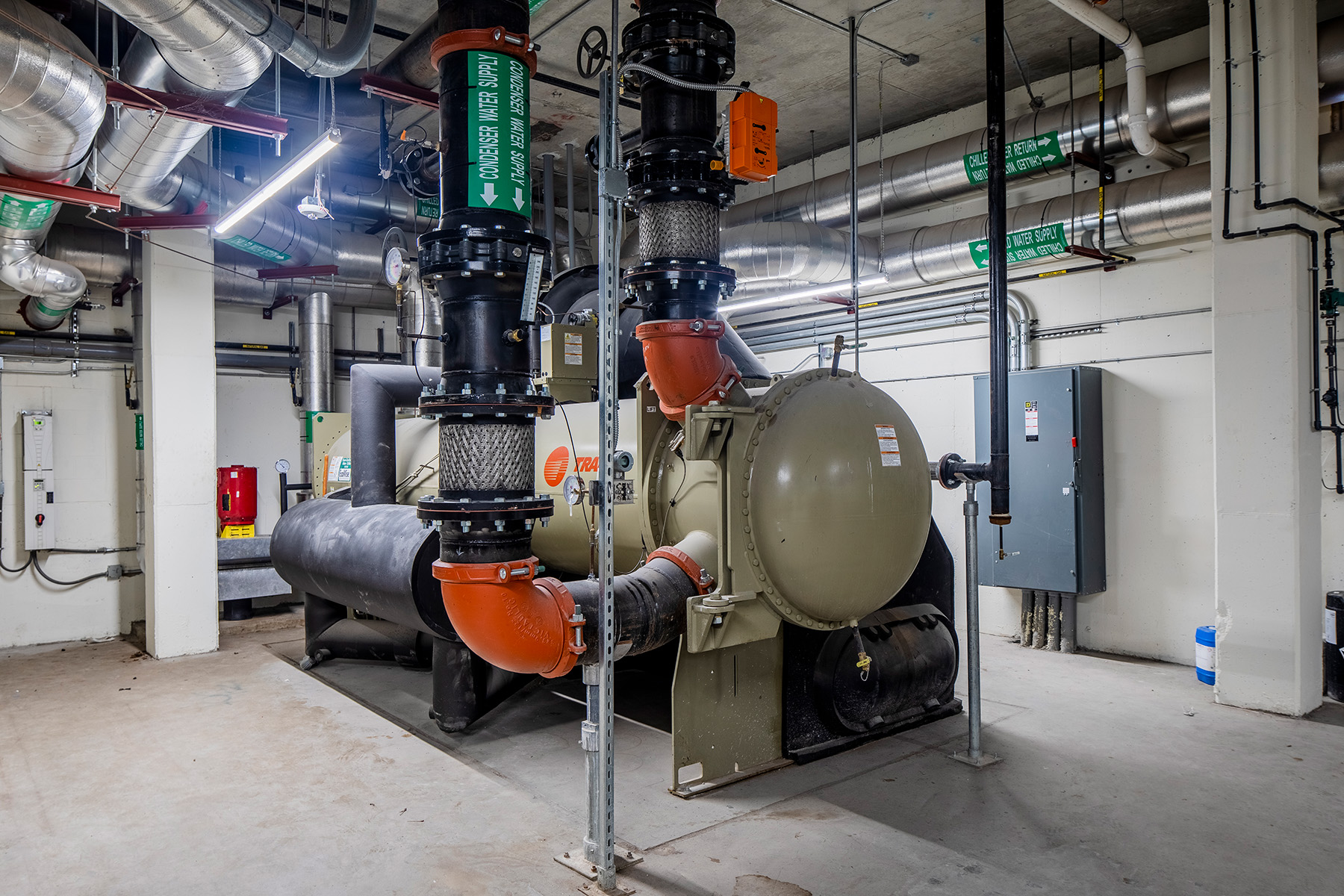 - Rooftop cooling towers and water-cooled centrifugal chillers