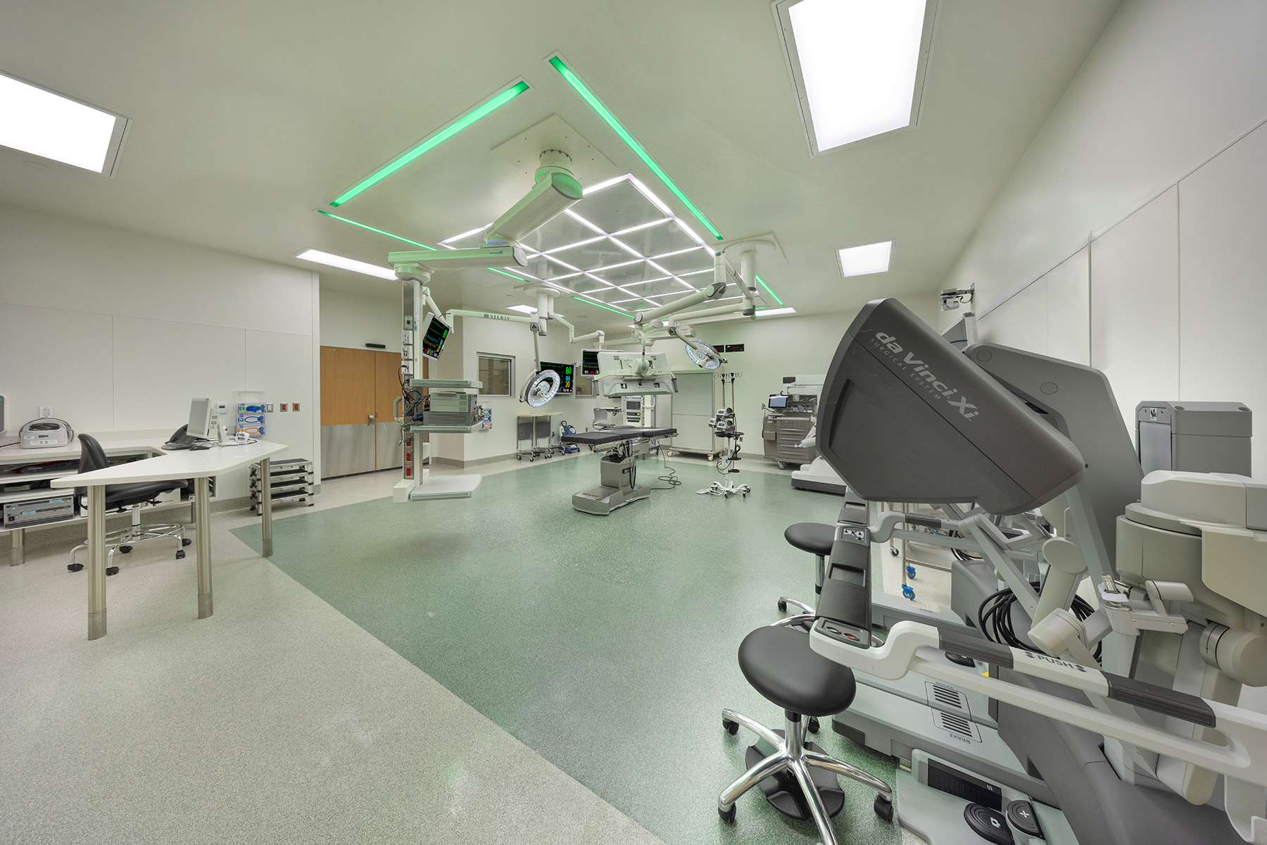 Tower also includes private pre- and post-surgical care spaces, a central sterile processing department, a lab, and a pharmacy.