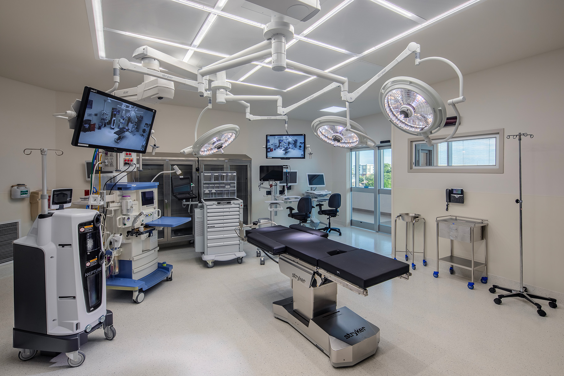 With 75 inpatient rooms and 10 operating suites, including four virtually connected suites for remote surgical training, the hospital will provide advanced care for orthopedic patients. The medical pavilion offers outpatient clinics, an imaging suite equipped with cutting-edge imaging and virtual reality technology, an ambulatory surgery center with 12 operating rooms and three procedure rooms, and medical office space.