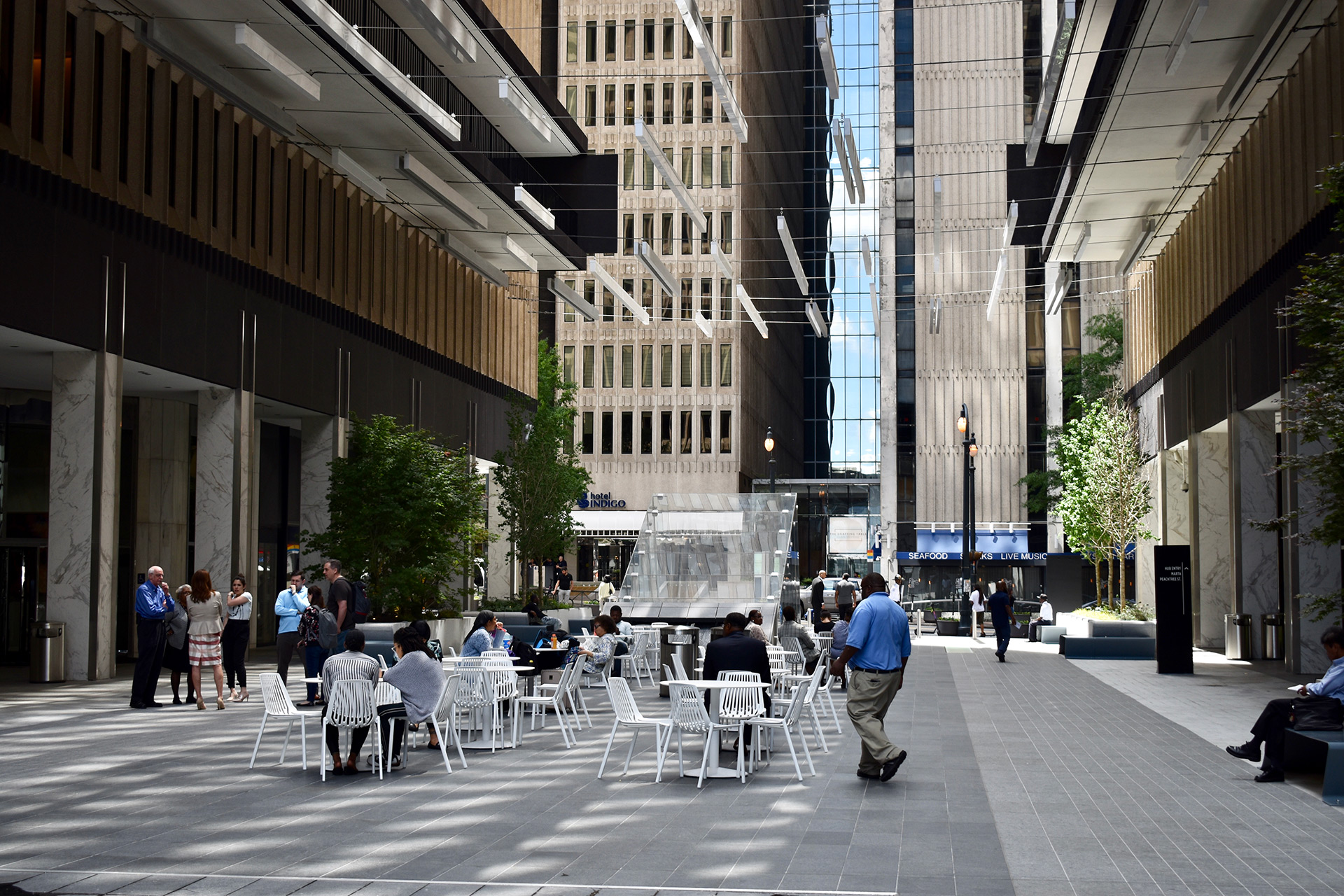 Atlanta’s famed mall opened to acclaim in the 1970s and covers 2.3 million square feet of office space in six buildings, clustered around a newly created pedestrian courtyard that offers shoppers and pedestrians water features, paving, benches and lighting - all designed to encourage use of the space as a vibrant gathering place. A show-stopping glass-enclosed staircase is the centerpiece of the courtyard.