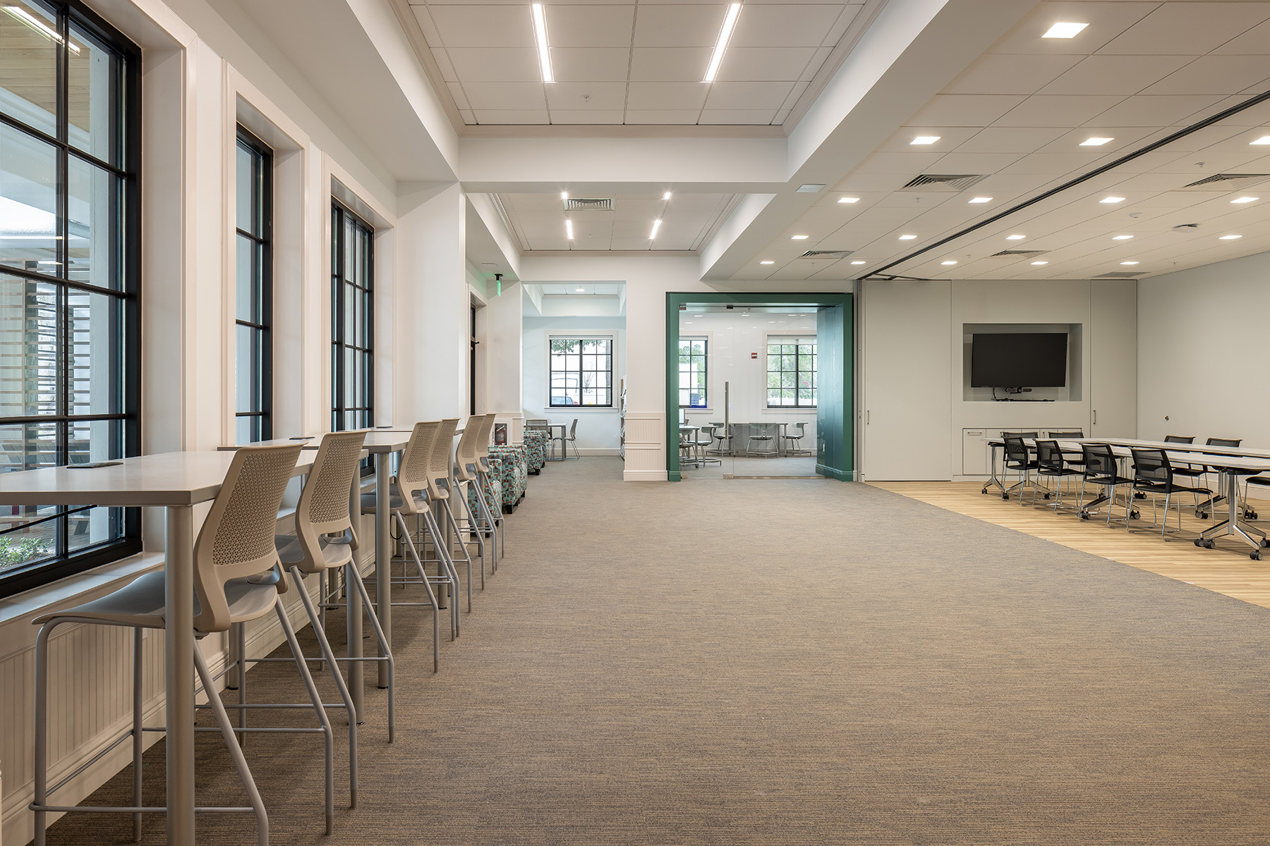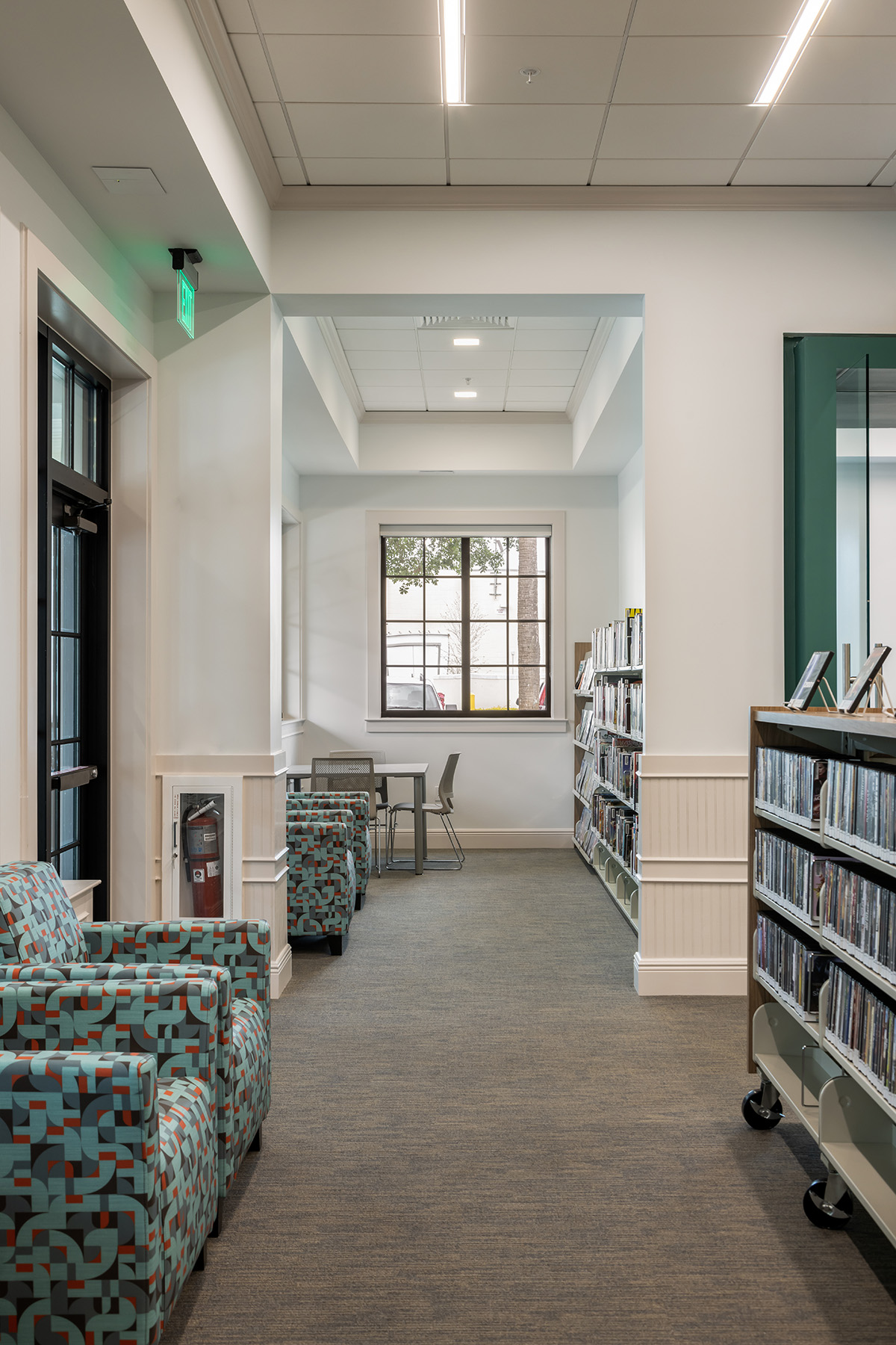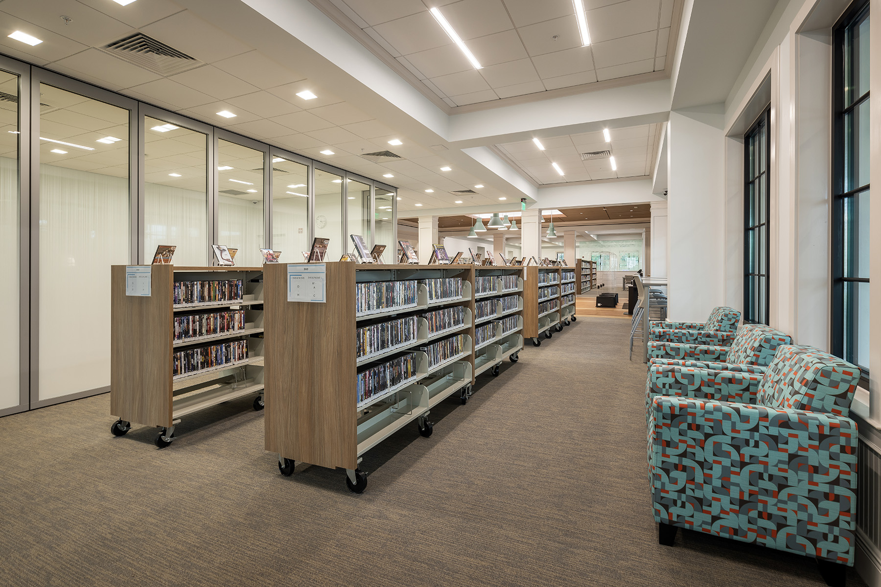 Interior renovations include a central service desk, a flexible meeting room and separate spaces for adults, teens and children.