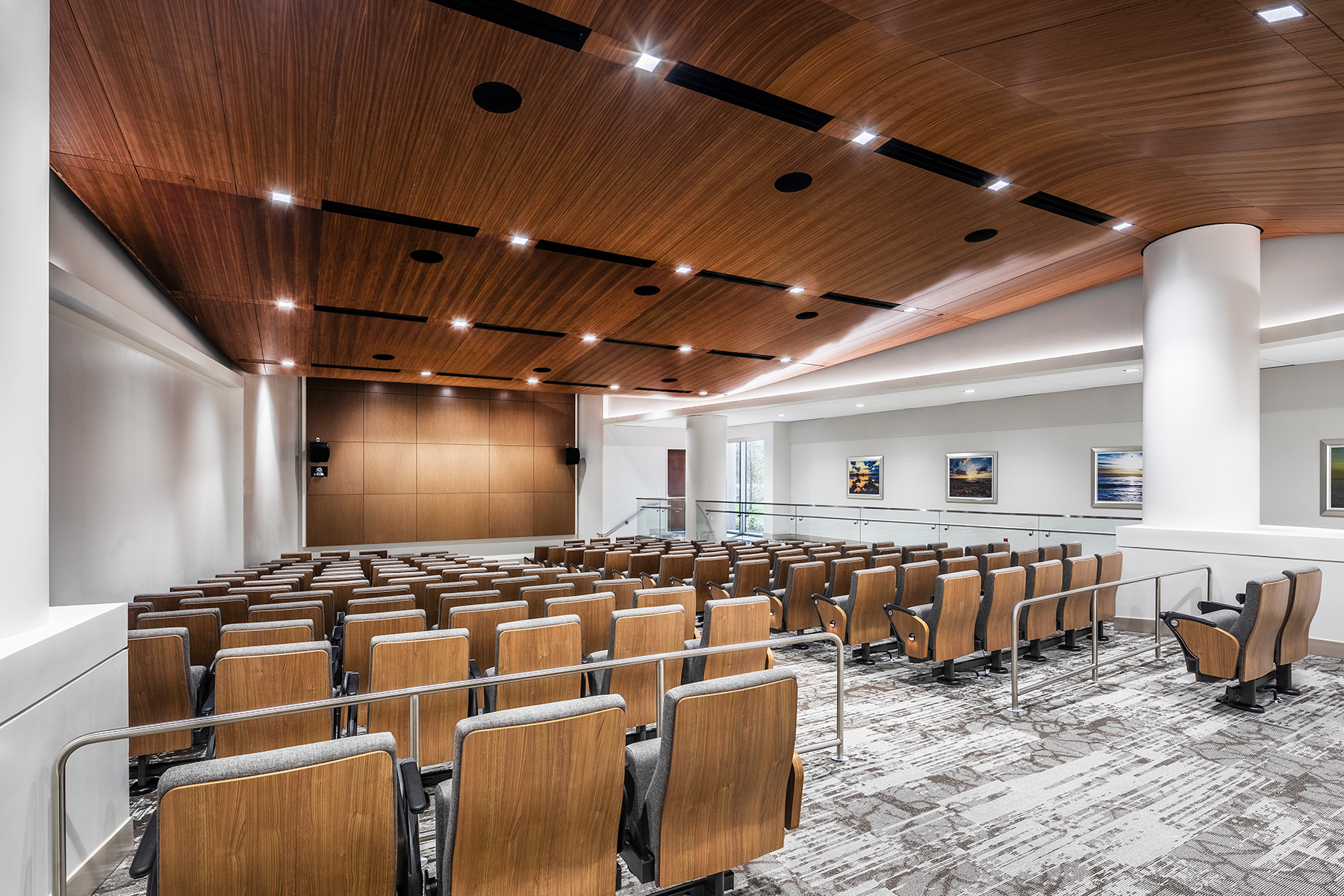 This state-of-the-art surgical and patient tower adds 18 brand new, state-of-the-art surgical operating rooms, each equipped with advanced technology leading to enhanced patient outcomes. The tower includes 100 modern and spacious private rooms with beautiful large windows and elegant, upscale finishes to create a calm and peaceful healing environment and a 24-bed critical care unit. A new two-story atrium main entrance for the hospital is accessed from the renovated parking garage. The first floor amenities include a gift shop, coffee shop, auditorium and meetings spaces as well as a chapel. The second floor features a large family waiting room; fourth floor includes a rooftop terrace and lounge while the fifth floor provides private patient rooms and rehabilitation gym.