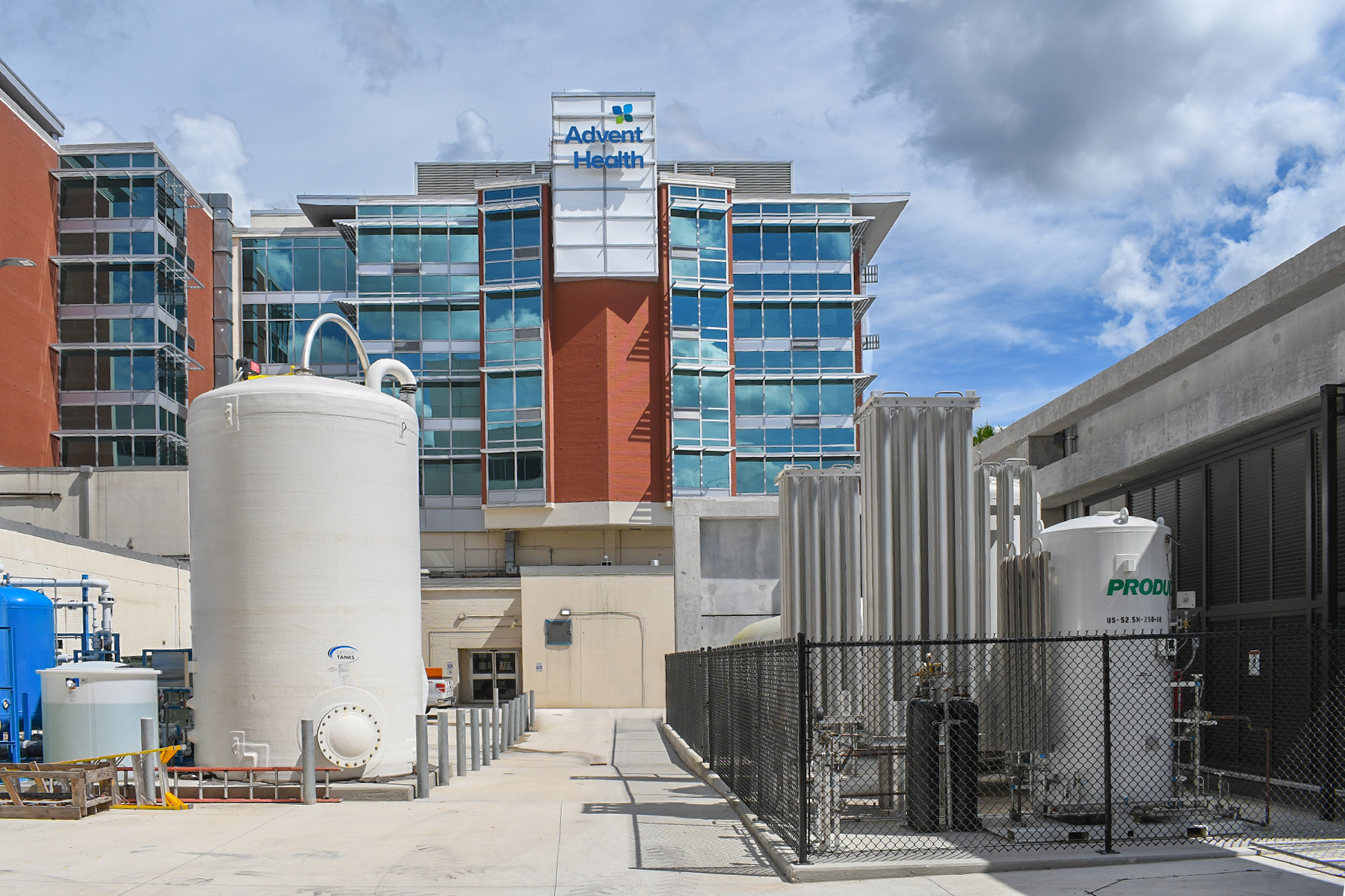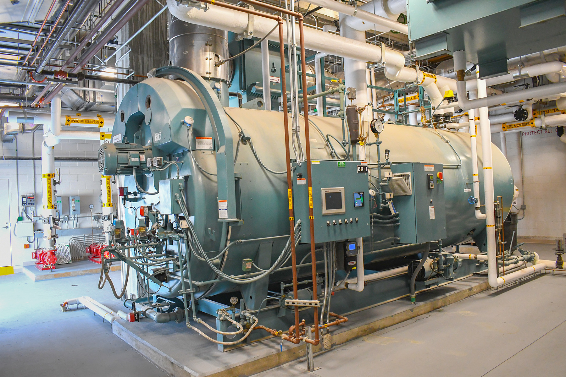 Previously the central utilities were scattered throughout the campus with the largest existing portion of the utilities (three 1,000 ton chillers) located in the northeast corner of the campus. The existing south tower has two 200 ton chillers that are directly connected into one loop with the northeast chiller plant chillers. A new central plant located on the northeast side of the campus has the capacity to handle the additional heating and cooling load required by the tower expansion and is cross-connected with the existing building allowing it to take on some of the load of the existing campus. The new 9,000-ton/13 MW central energy plant is sized to accommodate two future floors on top of the new tower (eight total stories) in addition to back-feeding to the existing hospital. Sustainable design features include premium efficient centrifugal chillers, demand controlled ventilation, desiccant dehumidification for low temperature/low humidity applications and low-flow plumbing fixtures.