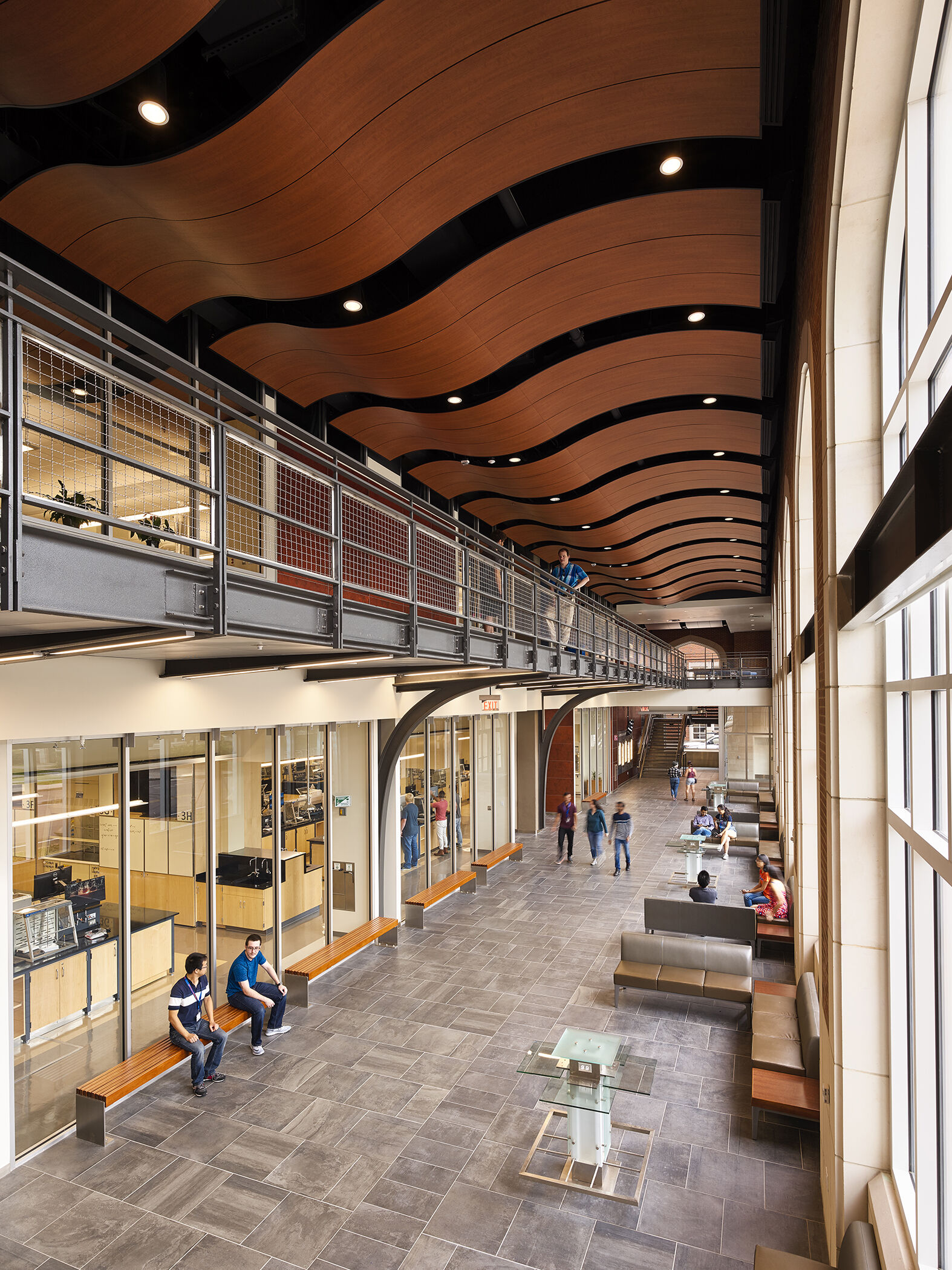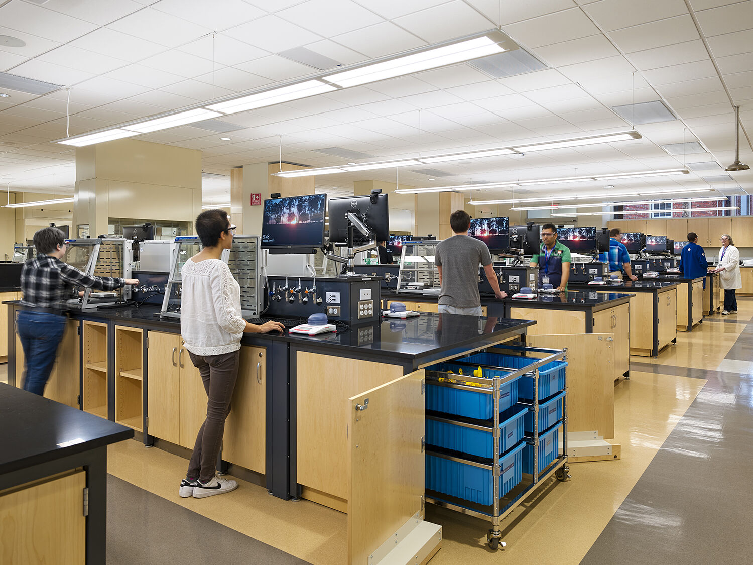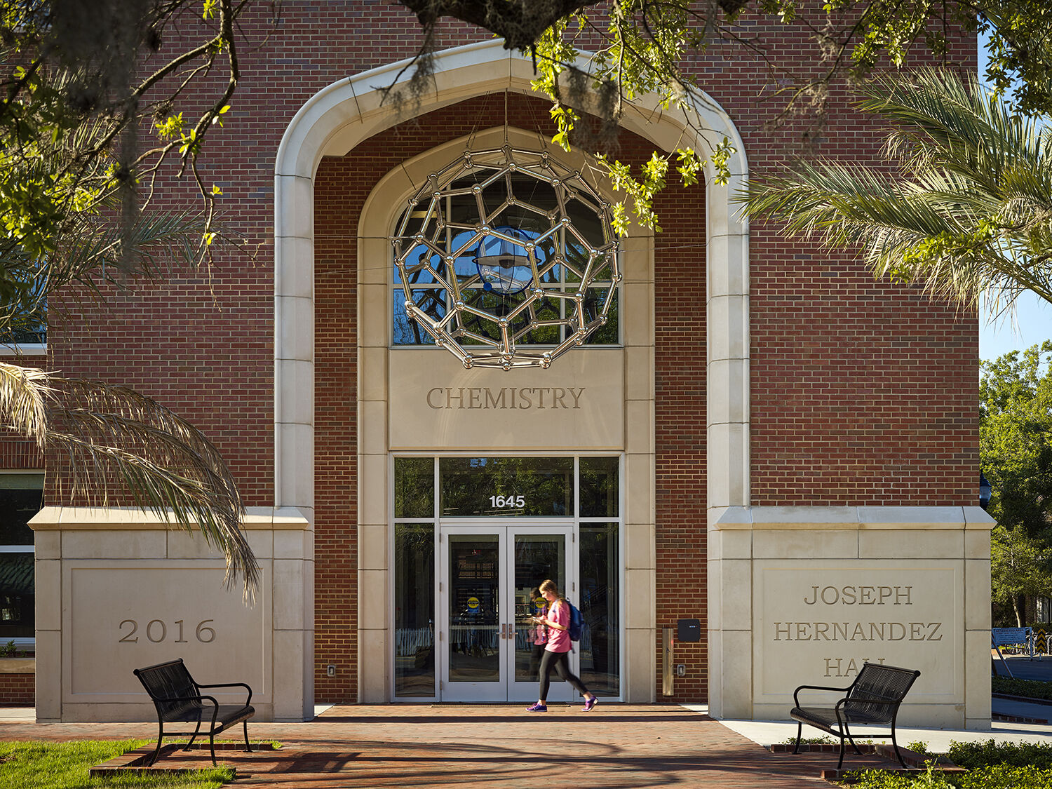 In keeping with the University’s commitment to sustainability, the building is LEED Gold certified. Creative solutions, including a mechanical mezzanine, were developed to safely exhaust chemical fumes while considering energy consumption, aesthetics and noise mitigation from rooftop exhaust fans. The structural design addresses the stiffness required for operation of sensitive equipment. Exhaust system heat recovery, daylighting and occupancy sensors are some of the building’s energy-efficient features.