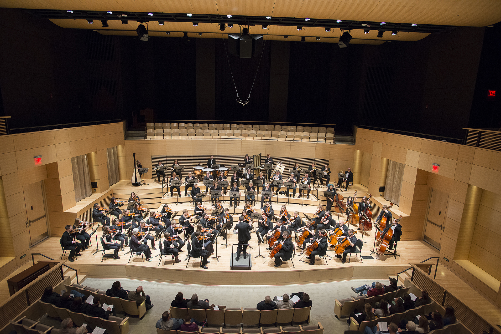 The large volume above the ceilings and catwalks in the Concert Hall helps provide a strong natural acoustical environment for both large and small music groups. Adjustable acoustic curtains that allow the space to be altered to accommodate a variety of performance types and genres, combined with quiet mechanical systems, make the new Rita Tallent Picken Center a place where the connection between performer and audience will be celebrated for years to come.